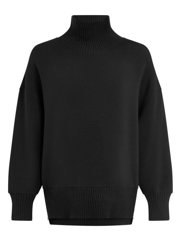 The Barker High Neck Sweatshirt by Varley reworks relaxed tailoring with architectural details. Cut in an easy, boxy silhouette, it features a ribbed high neck and elongated ribbed cuffs and hem that extend at the back for subtle volume. Discreet side zips open into vented panels for movement and styling versatility. Dropped shoulders and a clean front create a modern, pared-back look that layers easily over trousers or knitwear. Wear alone or with coordinating separates for a considered casual outfit.