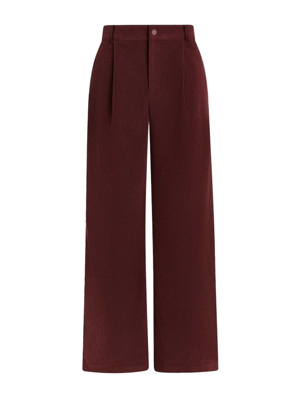 The Floris Wide Leg Trousers by Varley are cut for a high waist and a full, flowing leg. Tailored front pleats add structure while belt loops and a snap-button waist give a neat finish. Practical side pockets and back welt pockets are balanced by an elasticated section at the rear for added comfort. The fabric has a subtle ribbed texture that catches the light and gives depth to the silhouette. Wear these trousers with a fitted top and loafers for an easy refined look that works for day-to-day dressing.