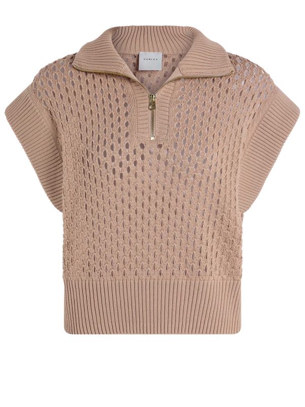 The Gaines Half-Zip Knit by Varley is a stylish knitted vest made in the label's textured Pineapple Knit. This Varley vest features a half-zip fastening and a ribbed collar, ribbed cap sleeves and hem. Wear yours with shorts in summer or style it as a layering piece on colder days.