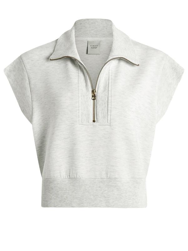 Varley's Kelly Sweat is a cropped, short-sleeved sweatshirt made for summer styling. Crafted from the brand's signature DoubleSoft® fabric, this Varley sweatshirt is extra soft for all-day wear. It's designed for a relaxed fit and features a ribbed, high neck collar, a ribbed panel with half-zip closure, short sleeves and a rib hemband with side slits.
