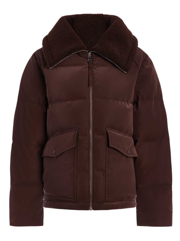 The Roseville Down Jacket is a puffer style from Varley. It features a generous sherpa-lined collar, full-length zip and large flap pockets with press-stud closures. Quilted panels and a fitted drawcord hem trap warmth while maintaining a relaxed, boxy silhouette for easy layering. Long sleeves and a mid-length cut add practical coverage, and visible metal hardware reinforces the functional design. A branded zip pull and toggled drawcords at the hem complete the look, making this jacket ready for commuting and weekend wear when temperatures fall.