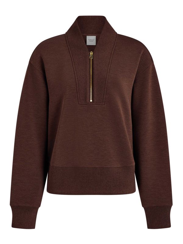 The Sally Half-Zip Sweatshirt by Varley is a relaxed, elevated take on casual knitwear. Cut with dropped shoulders and a roomy body, it features a ribbed shawl collar with a half zip that can be worn open or closed to vary the neckline. Finished with broad ribbed cuffs and a wide hem, this sweatshirt has a refined, structured drape that works equally well with jeans or tailored loungewear. The gold-tone zip adds a subtle touch of polish to the otherwise clean, streamlined silhouette.