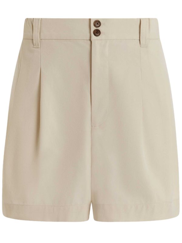 The Tansy Woven Shorts by Varley are tailored mid-thigh shorts featuring soft front pleats and a relaxed, slightly flared silhouette. A twin-button waistband with belt loops offers structure, while an elasticated back waist adds comfort. Practical side pockets and two rear welt pockets keep essentials close at hand. Finished with a clean hem and a concealed fly, these shorts translate smart tailoring into an easy warm-weather piece. Wear them with lightweight tops or knits for a considered seasonal look.