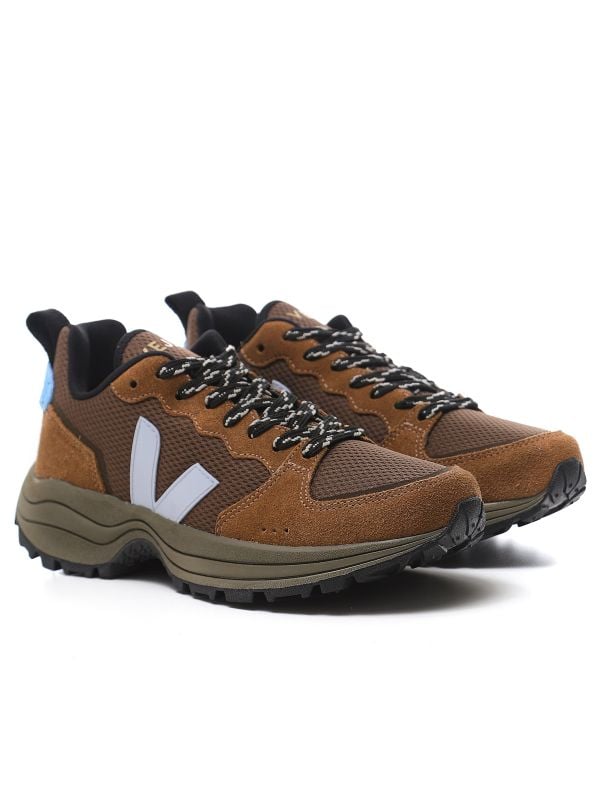 Step up your sneaker game with the VEJA Venturi II trainers, where chic meets eco-conscious in a truly stylish package. These beauties boast recycled polyester Alveomesh uppers, adorned with luxe suede panels and the iconic V-logo for that unmistakable VEJA flair. The dark brown hue, complemented by playful light blue details, adds a touch of urban sophistication to any outfit.