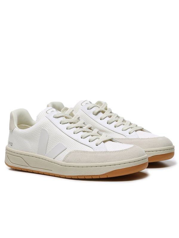 The VEJA B-Mesh V-12 sneakers are a superb option for the eco-conscious gentleman. Engineered with recycled plastic B-Mesh uppers, the white sneakers are super lightweight, breathable and water-repellent. Featuring a lace fastening and suede panelling, whilst the V branded sides add iconic detail. The VEJA sneakers have been crafted in Brazil and are complete with a sugar cane insole and wild rubber outsole that has been harvested from the Amazonian forest - showcasing the label's ethical goal to encourage fair trade.