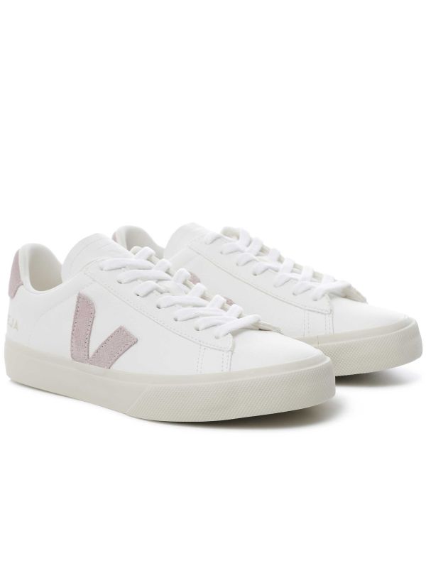 The Veja Campo Leather White Babe Trainers are a minimalistic, low-top silhouette featuring the brand's signature details. These Veja trainers are crafted with ChromeFree leather uppers and suede panels with a round toe, lace-up fastening, the iconic V branding on the sides and branding to the heel. The white and pastel pink colourway makes these trainers an easy style to pair with almost anything.