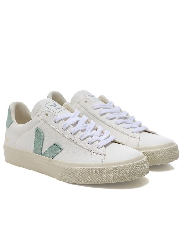 Add a cool finishing touch to your off-duty looks with the Veja Campo sneakers. Made with a ChromeFree leather upper, these clean modern sneakers offer a stylish, understated silhouette. The sneakers features a lace-up fastening, suede V branding and ChromeFree leather and suede panels, with pops of matcha for a fun twist on a classic style. They're finished with a tech inner lining made from recycled plastic bottles, which has been developed to provide maximum comfort and flexibility. Handcrafted in Brazil with sustainability in mind, these timeless sneakers are an essential style.