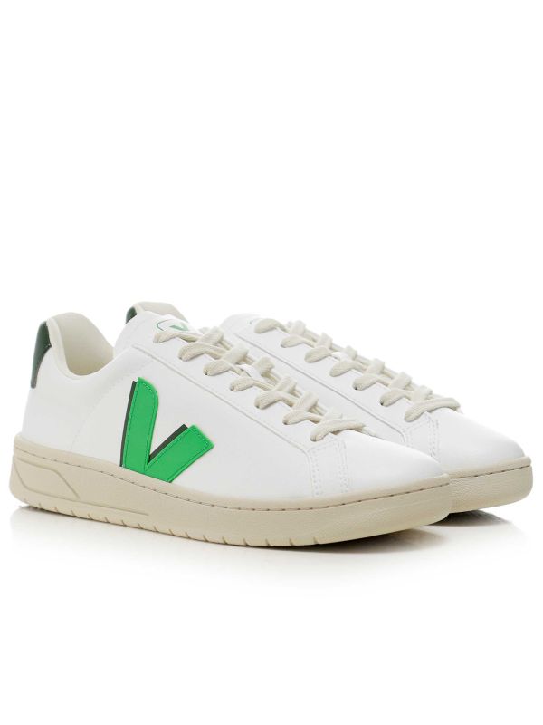 The VEJA Urca trainers showcase a modern, eco-friendly design. They feature CWL (cotton worked as leather) uppers and panels, giving them a sleek, durable finish. The V logo is crafted from Amazonian rubber, a material that also composes part of the outsole, blended with recycled rubber for added sustainability.