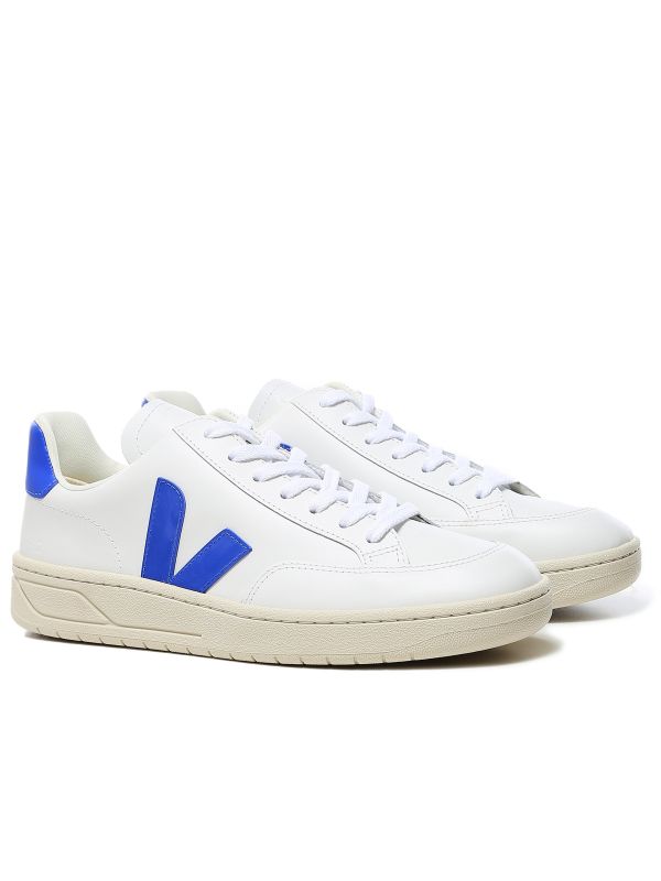 Ecological and sustainable, the VEJA V-12 sneakers are a modern must-have. Engineered in supple leather uppers, the white sneakers are a clean-cut option ideal for a host of occasions. Featuring a lace-up fastening and blue V branded sides, whilst the technical jersey lining has been cleverly designed with organic cotton and recycled polyester. The VEJA sneakers have been made in Brazil and are complete with wild rubber soles that has been harvested from the Amazonian forest - showcasing the label's ethical goal to encourage fair trade.