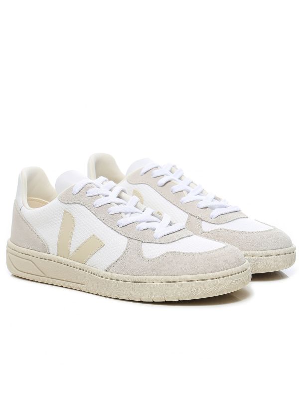 The VEJA B-Mesh V-10 sneakers are packed with sporty character. Engineered with recycled plastic B-Mesh uppers, the sneakers are super lightweight, breathable and water-repellent. Featuring a lace fastening and suede panelling, whilst the V branded sides add iconic detail. The VEJA sneakers have been crafted in Brazil and are complete with a sugar cane insole and wild rubber outsole that has been harvested from the Amazonian forest - showcasing the label's ethical goal to encourage fair trade.