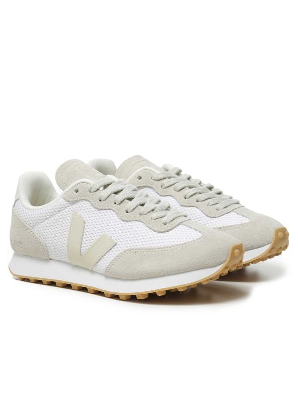 The Veja Rio Branco Alveomesh trainers are a bold shoe with a pared back colour palette. Crafted from Alveomesh, a technical fabric made from recycled polyester, these trainers are made for a comfortable wear with breathability and flexibility at the core. Featuring the signature V rubber logo, branding to the heel and tongue, panel details and contrast organic cotton laces.