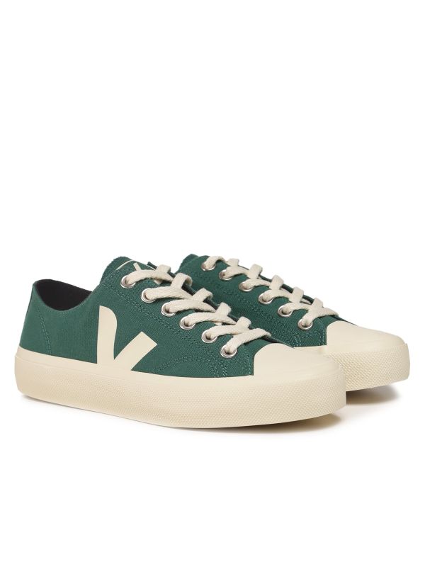 The VEJA Wata II sneakers are a versatile style to complete your favourite everyday outfits. Crafted in cotton canvas, these ultra-cool green sneakers have a sleek low-top silhouette, lace-up fastening, V-branded sides and a contrasting rubber outsole and toe cap.