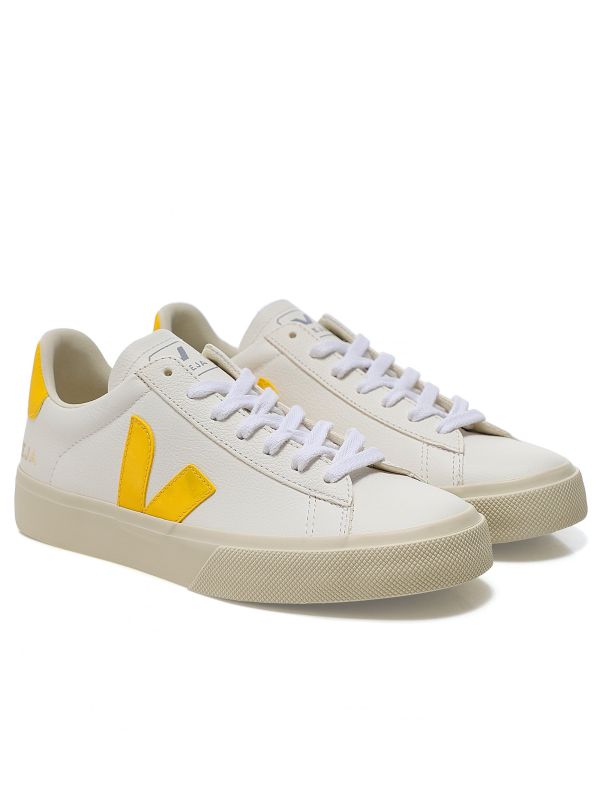 The Veja Campo sneakers are a sleek staple for your everyday footwear rotation. Expertly crafted with a ChromeFree leather upper and timeless silhouette, they feature a lace-up fastening, yellow V branded sides and a yellow leather panel at the ankle. They're complete with a soft jersey lining for all-day comfort. Made in Brazil using sustainable materials, these ethical and ultra-stylish sneakers are sure to become your new favourite pair.