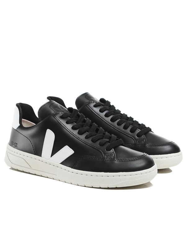 Add retro sports style into your shoe collection with the Veja V-12 sneakers. Engineered in supple leather uppers, the black sneakers feature a lace-up fastening and V branded sides, whilst the technical jersey lining has been cleverly designed with organic cotton and recycled polyester. The Veja sneakers have been made in Brazil and are complete with wild rubber soles that has been harvested from the Amazonian forest - showcasing the label's ethical goal to encourage fair trade.