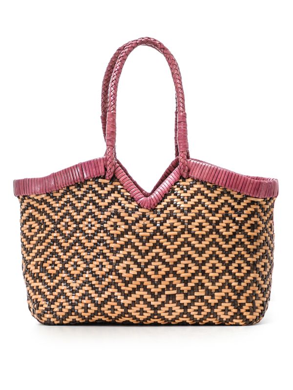 The Crudelia Flower Woven Tote is a handwoven carryall from Vipera, offering a structured yet relaxed silhouette for everyday use. The woven body is trimmed with leather-wrapped edging and finished with braided double top handles for comfortable carrying. Inside, a fabric-lined interior includes a zipped pocket and additional slip pockets to keep essentials organised. The open-top design makes it easy to access belongings while the neat woven construction keeps the shape. Ideal for day-to-day errands or weekend outings, this piece blends practical detailing with artisanal construction.