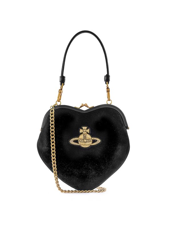 Meet the perfect evening bag–the Belle Heart bag by Vivienne Westwood. This heart-shaped purse has a soft velvet texture and the brand's signature orb design on the front. It is complete with a kiss lock fastening, detachable handle and chain strap to suit your outfit preferences.