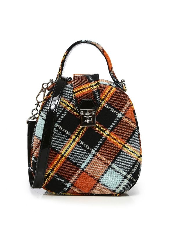 Updated with a fresh tartan print for SS20, the Vivienne Westwood Dolce bag is a chic style for everyday wear. Featuring a metal clasp fastening, protective metal feet and silver-tone hardware, this bold handbag can be carried by its single top handle or using its detachable, adjustable crossbody strap. The bag is fully lined in vibrant orange fabric and is complete with subtle Orb branding for an authentic finishing touch.