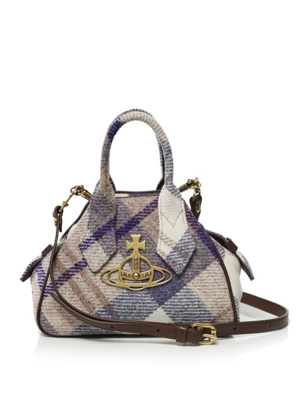 The Vivienne Westwood small Harris Yasmine bag is a compact accessory with an abundance of style. Crafted from premium Harris Tweed wool in a tartan print, this beautiful tote bag features a zip fastening, twin top handles, gold-tone hardware and a signature Orb motif to the front for an authentic finishing touch.