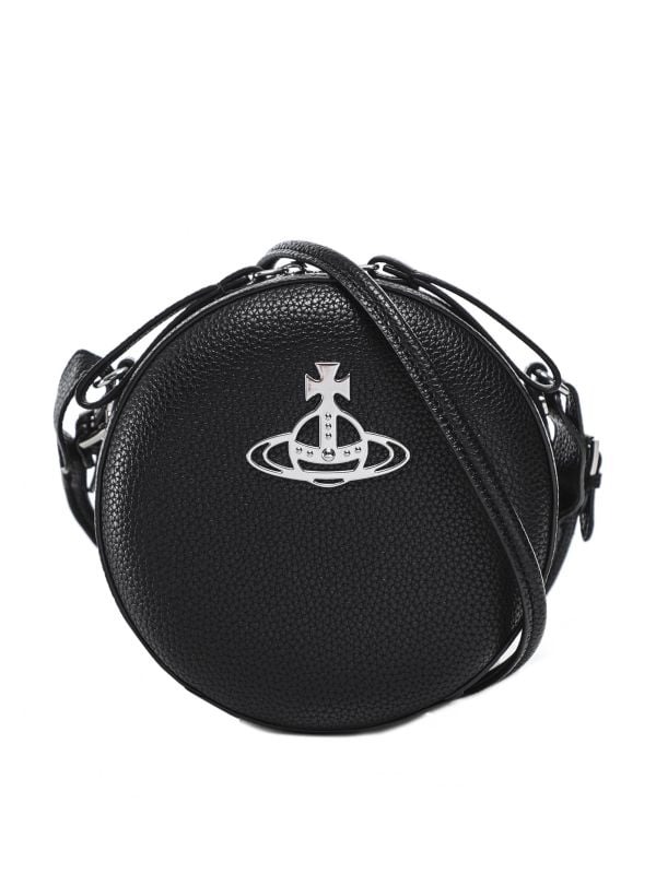 Designed with a modern circular shape, the Vivienne Westwood Johanna round bag returns this season in grained vegan leather. This sophisticated crossbody bag features a zip around fastening, adjustable shoulder strap, silver-tone hardware and is complete with the distinct Orb emblem to the front for an authentic finishing touch.