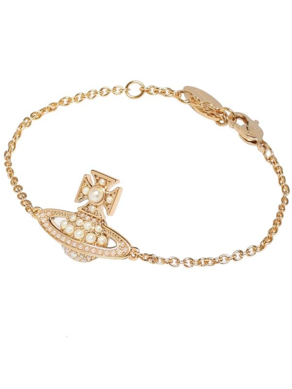 One of the defining features of the Vivienne Westwood Luzia Bracelet is the delicate pearl embellishments that adorn its Orb. These luminous pearls add a touch of grace and sophistication, creating a harmonious contrast with the bracelet's bold design. Each pearl is carefully selected to ensure a flawless and lustrous finish.