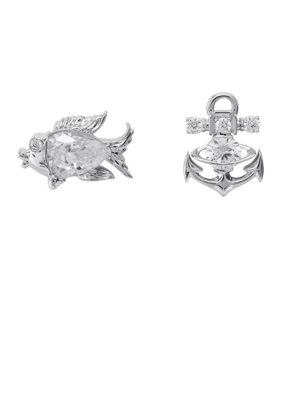 The Vivienne Westwood Marialena Fish earrings draw inspiration from the sea. Crafted in silver tone brass, the earrings deliver a highly polished shine. Featuring a fish with alternative anchor design and stud fastening, whilst the Swarovski crystal inlays make for a dazzling finish.
