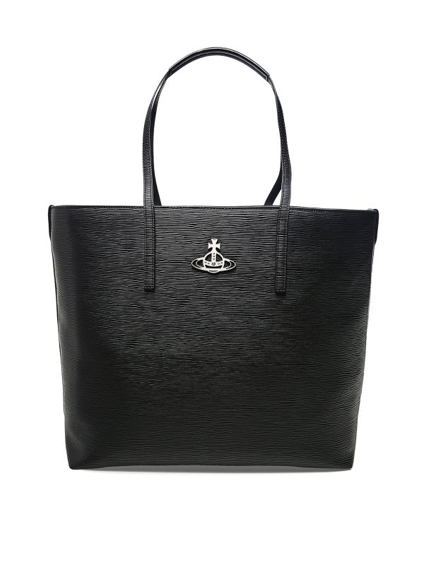 The Vivienne Westwood Polly tote bag is an elegant accessory for work and play. Crafted in textured synthetic leather, this vegan tote features a drawcord closure, twin carry handles and iconic Vivienne Westwood Orb logo. This spacious bag is a stylish companion that will keep you organised, complete with an interior zip pocket and branded details.