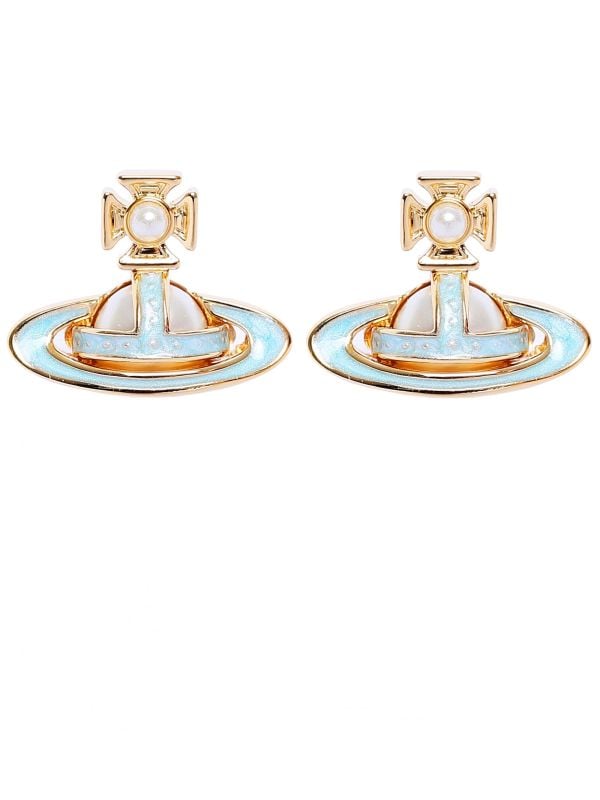 The Vivienne Westwood Simonette Bas earrings ensure effortless style. With a beautiful Swarovski pearl at the centre of the branded Orb design, the earrings offer security with a butterfly back. Presented in a branded gift box, the earrings also come with a pouch, perfect for a special gift.