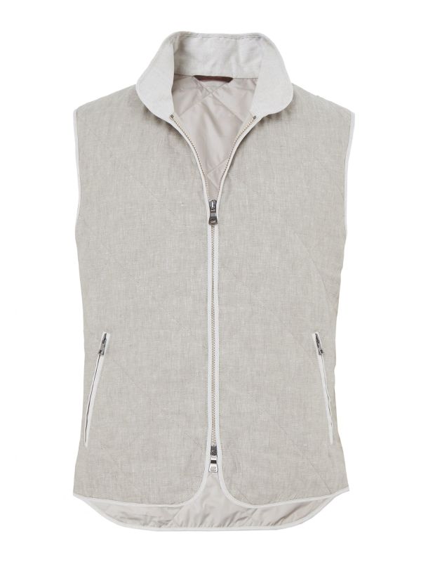The Waterville quilted linen gilet is an ideal option for mid-season layering. Expertly engineered in Italy in a diamond quilt design, the vest has been crafted in an external linen fabric that will ensure breathability. Featuring a stand collar with buttoned strap, two-way zip fastening and zippered hand pockets, whilst the contrast trims and piping add striking detail.