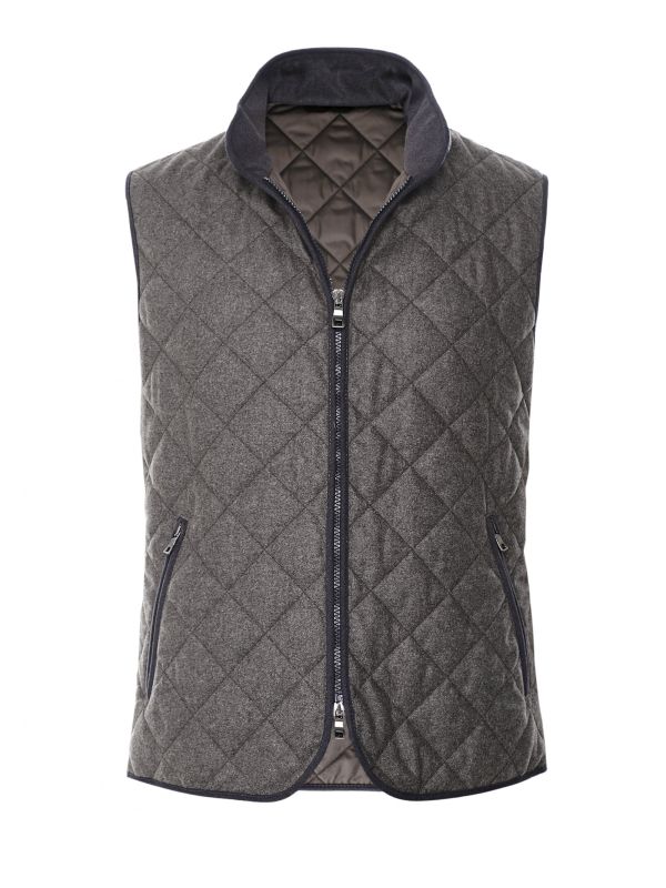 The Waterville cashmere Theo gilet is a luxurious option that will keep the elements at bay. Expertly engineered in Italy in a box quilt design, the vest has been crafted in a water-repellent cashmere and wool shell that will provide a super soft handle and ensure you stay dry and comfortable all-day long. Featuring a stand collar with buttoned strap, two-way zip fastening and zippered hand pockets, whilst the contrast piping adds striking detail.