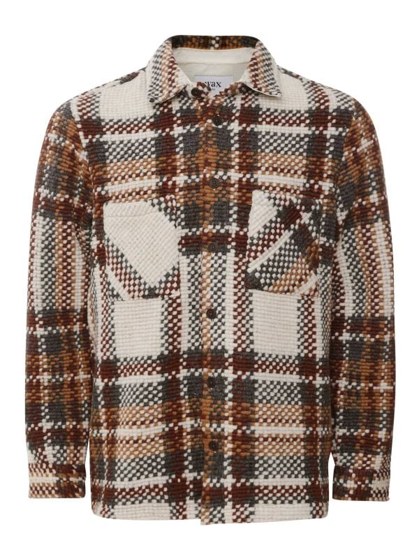 The Wax London Whiting overshirt is a stylish layering piece with a modern twist on classic textures. Crafted from a soft wool blend, it features a knitted textured bobble finish and a bold check pattern for subtle visual interest. Designed with a shirt collar, corozo nut buttons, patch pockets, and buttoned cuffs, it combines practicality with refined detailing. Cut to a regular fit, this Wax London overshirt is perfect for adding warmth and style to casual, everyday outfits.