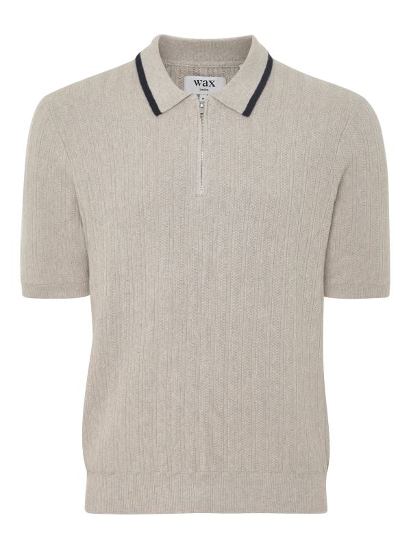 The mélange striped design adds subtle texture and interest, complemented by a tipped collar and zip placket for a modern edge. Short sleeves, ribbed cuffs, and a ribbed hem complete the regular-fit silhouette, making this Wax London polo an effortless choice for polished, everyday style.