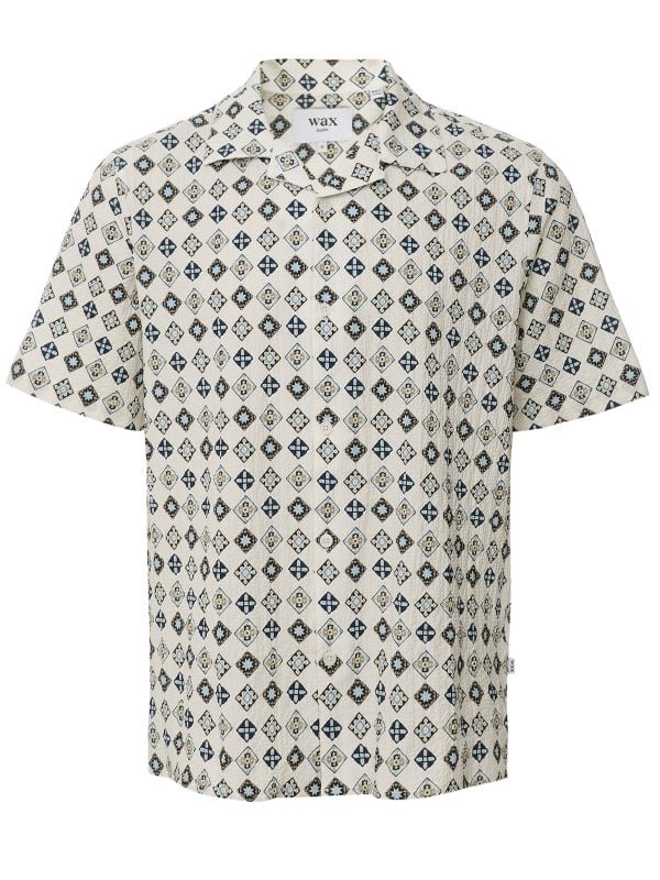 The relaxed fit teams perfectly with the casual camp collar, short sleeves, and easy button front, while a geometric tile pattern adds a fresh dose of visual interest. Finished with subtle side slits for extra freedom of movement, it’s the ideal Wax London shirt to throw on with shorts or relaxed trousers when the temperature climbs.