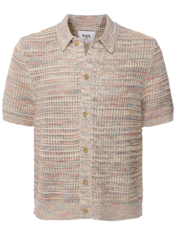 The Wax London knitted Tellaro shirt combines style and comfort with its cotton blend fabric and space-dyed twist knit. This unique knit creates a textured, multi-tonal effect that adds visual interest to the shirt. Featuring a collared, button-down design with short sleeves, it offers a modern, casual look.