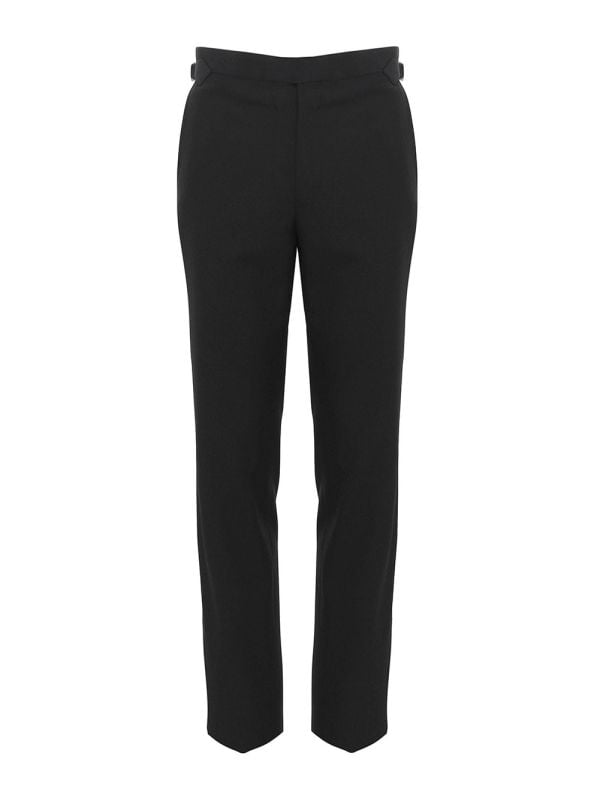 Elevate your professional suiting with the Wensum Cranwick pants. Expertly tailored from soft wool cloth the dapper pants are decorated with tonal grosgrain ribbon panels and adjustable buckles at the sides while featuring classic french bearer and zip fastening, slanted side pockets and unfinished hems for your own customisation.