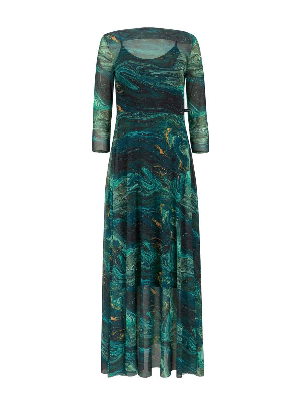 The Xenia Design Puna dress is a stylish statement piece that will effortlessly take you from day to night. Crafted in sheer mesh with a cami dress underlay, this beautiful maxi dress features a high neckline, 3/4 sleeves and an abstract swirl print for a bold finish. Wear it with chunky sandals for an instantly chic look.