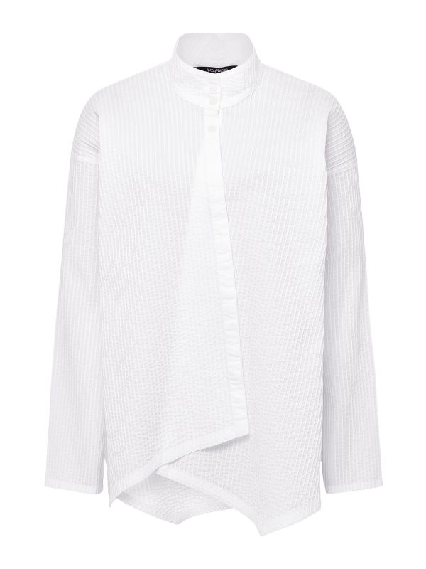 The Yaccomaricard asymmetric lawn shirt is a flattering, transitional staple piece that can easily be worn with your favourite trousers or layered with a jacket. Made from 100% cotton, this lightweight shirt features a partially concealed button-down fastening, long sleeves, a short stand collar and a quirky asymmetric silhouette.