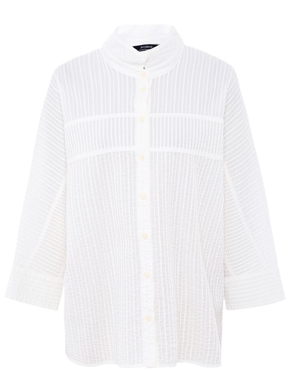 Get an elegant everyday look with the Yaccomaricard banded pintucked shirt. This lightweight, loose fit shirt is constructed from panels of directional pin tucked cotton, with sculptural cropped sleeves and wide cuffs. The shirt is complete with a stand collar, button down fastening and curved hemline.