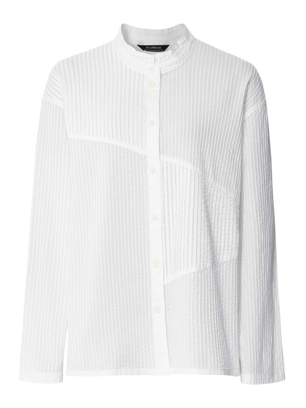 Another signature pintuck shirt from Yaccomaricard, the 100% cotton lawn shirt is a pretty staple. It has a stand-up collar, button fastening, cuffless sleeves and a combination of thick and slim pintucks. It is these details that make it stand out from your other staple shirts.
