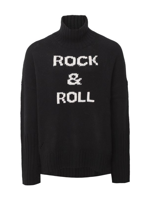 Get a stylish everyday look with the Zadig & Voltaire Alma jumper. Made from 100% merino wool, this super soft sweater features a turtleneck, dropped shoulders, ribbed trims and a contrast "Rock & Roll" intarsia design to the front. Wear with your favourite jeans and ankle boots.