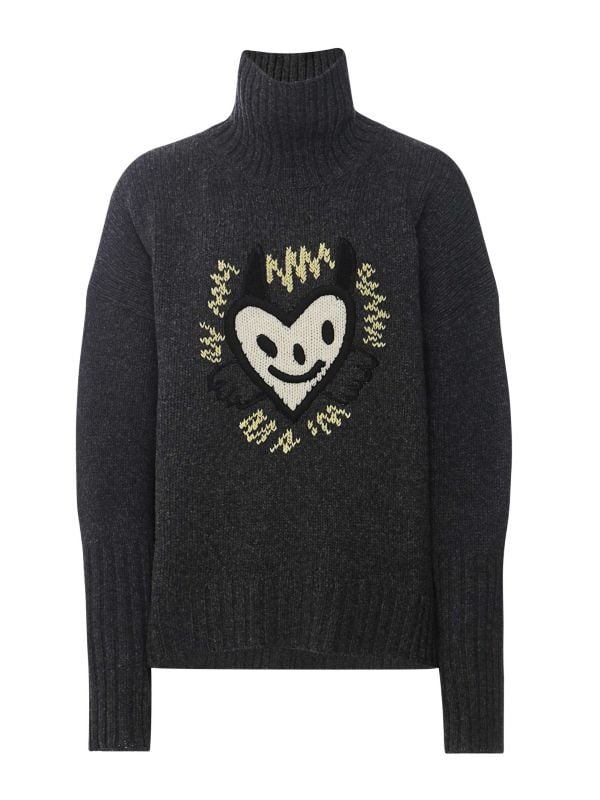 Introducing Zadig & Voltaire's Alma We Heart Jumper. Made from 100% merino wool, this snuggly jumper is a ribbed knit design with a high neck, long sleeves with long ribbed cuffs with thumb holes and a fun jacquard heart motif. Style it with jeans in spring and wear it on repeat when the weather calls for a layer.