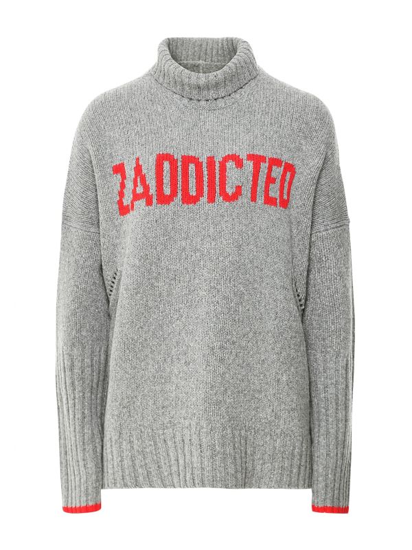 The Zadig & Voltaire Alma sweater is a stylish addition to your everyday wardrobe. Crafted in certified Woolmark® merino wool, this super soft sweater features a cosy turtleneck, dropped shoulders, ribbed trims and a contrast 'zaddicted' intarsia slogan to the front. Team with your favourite jeans and sneakers for an effortless off-duty look.
