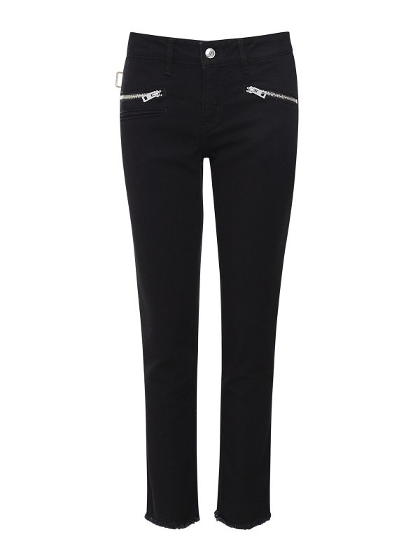 The Zadig & Voltaire Ava jeans are a slim-fit style with a shorter ankle length. Made from a stretchy cotton, these flattering jeans have a button and zip fly fastening, two hip pockets with statement silver zippers, a branded metal tab to the side, a faux welt pocket and two back pockets. The jeans are finished with raw hems that add a rock 'n' roll element and pair perfectly with a chunky boot.