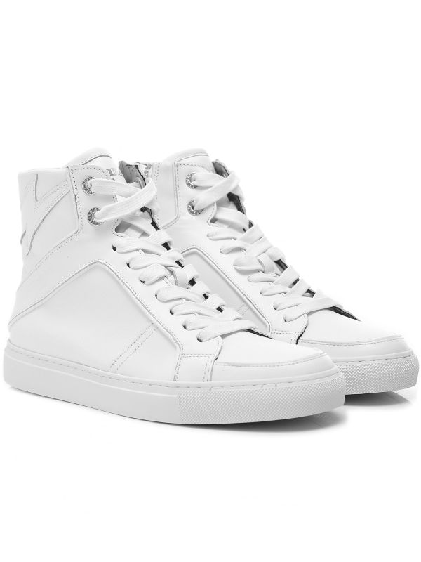 Add a modern finishing touch to your casual outfits with the Zadig & Voltaire High Flash sneakers. Crafted in soft goatskin leather, these stylish sneakers are a statement addition to your everyday looks. They feature a lace up and side zip fastening, quirky lightning bolt patches and a platform sole.