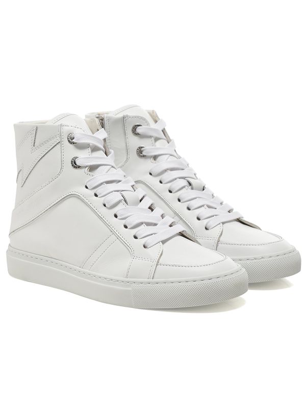 Add a modern finishing touch to your casual outfits with the Zadig & Voltaire High Flash sneakers. Crafted in soft leather, these stylish sneakers are a statement addition to your everyday looks. They feature a lace-up and side zip fastening, quirky lightning bolt patches and a platform sole.