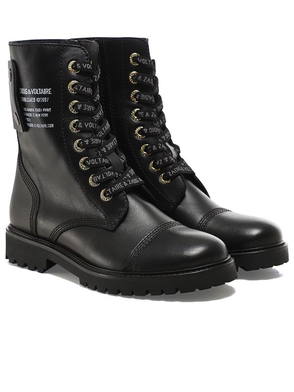 Step into the new season in style with the Zadig & Voltaire Joe boots. An investment piece crafted from smooth cow leather, these premium combat boots feature branded laces, a side zip fastening and printed branding at the side. Style yours with leather-look leggings for a super cool look.