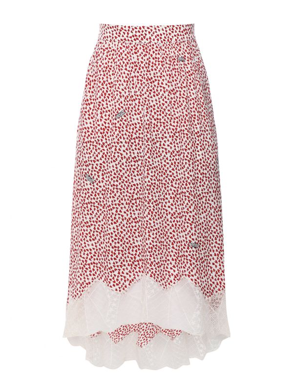 The Zadig & Voltaire Joslin Crush skirt is a super feminine piece to add to your everyday SS wardrobe. Beautifully crafted from pure viscose, the skirt has been cut to a midi length from lightweight fabric. Boasting two pockets to the front, heart design all over and a high-low hem, the skirt is complete with a stunning lace trim.