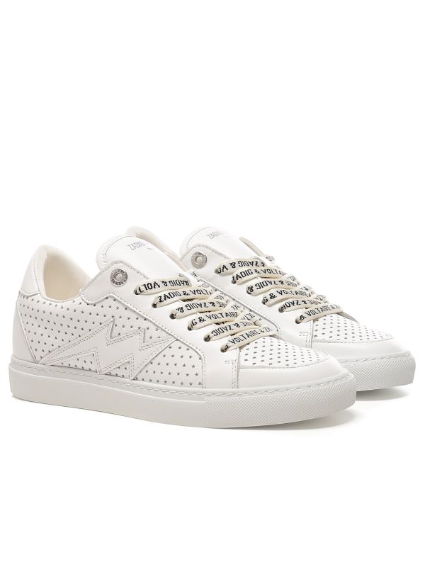 The Zadig and Voltaire LA Flash sneakers are a dynamic option perfect for everyday wear. Featuring a low-top silhouette with lace-up fastening, the sneakers showcase perforated stars offering playful detail. The Zadig sneakers are complete with branded laces and rubber outsole, whilst the side flash overlays provide a signature finish synonymous with the Parisian label.
