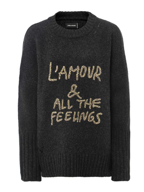 Crafted from anthracite-coloured merino wool, the Malta Jumper by Zadig & Voltaire is a must-have knit for your collection. This Zadig & Voltaire jumper has a round neck, long sleeves with slits for the thumbs and ribbed edges. Across the front, a multicoloured embroidered message reads "L'amour & All The Feelings", creating an eye-catching style you'll wear on repeat this season.