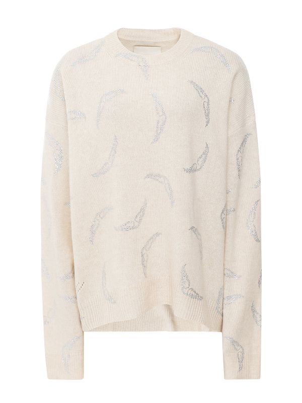 Transform your outfit with this dazzling knit–the Zadig & Voltaire Markus jumper. Scattered with diamanté wing motifs, this 100% cashmere jumper has a slouchy fit with a shorter hem at the front, perfect for partly tucking into skirts or trousers. It has a round neck with ribbed trims and sleeves that cover the hands.
