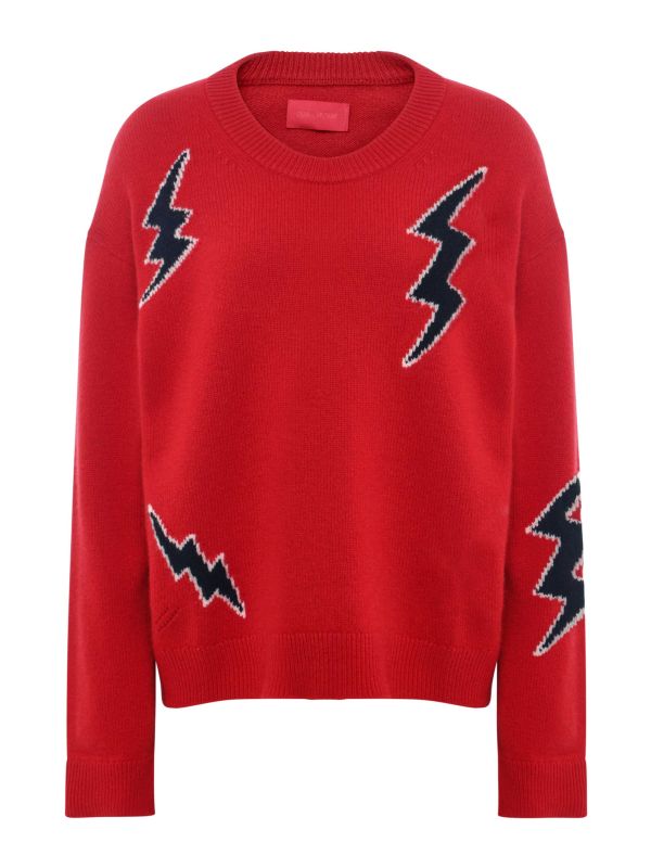 Crafted from 100% cashmere, the Markus jumper by Zadig & Voltaire is a statement knit. It features a crew neck, long sleeves and a ribbed neck, cuffs and hem. Scattered across the bold red is black lightning bolt motifs to the front, back and sleeves. A luxury knit, this Zadig & Voltaire jumper will elevate every outfit this season.
